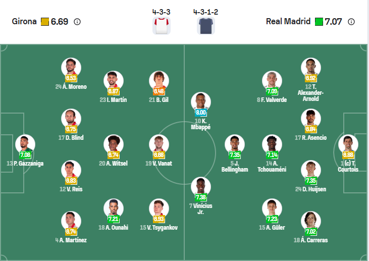 Real Madrid đang có những bất ổn nhất định, việc hòa cả 2 vòng gần nhất khiến họ chỉ còn hơn Barcelona 1 điểm và có thể mất vị trí này bất cứ lúc nào nếu không trở lại với mạch chiến thắng. Chính vì vậy đội bóng của HLV Xabi Alonso rất cần một chiến thắng ở vòng đấu thứ 14 này. Đến làm khách trên sân của đội bóng đang trong nhóm cuối bảng như Girona không phải trận đấu quá khó khăn nhưng nhiều khả năng phong độ bất ổn của Real Madrid sẽ khiến họ chỉ có được chiến thắng với tỉ số tối thiểu.