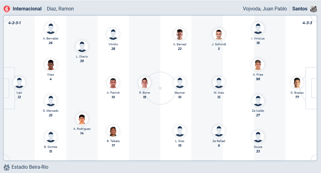 Santos mới trở lại hạng đấu cao nhất của Brazil ở mùa giải năm nay sau khoảng thời gian phải đá ở giải hạng dưới, rõ ràng họ chưa thể trở lại với ánh hào quang khi xưa và mục tiêu của thầy trò HLV Juan Pablo Vojvoda chỉ là trụ hạng. Ở thời điểm hiện tại mục tiêu đó chưa thành công khi họ đang đứng thứ 16 và chỉ hơn nhóm xuống hạng 1 điểm, các cầu thủ Santos cần chơi tốt hơn ở các trận đấu sắp tới để sớm đủ điểm trụ hạng, nhưng chuyến làm khách trên sân Internacional được đánh giá rất khó khăn. Nhiều khả năng Santos sẽ không thể có điểm ra về.